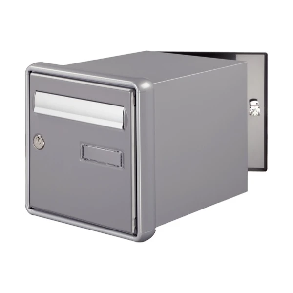 - Fenêtre d’introduction du courrier 235 x 28 mm avec volet en levant en alu anodisé argent