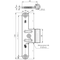 Paumelle Picarde Clémenson Droit Acier Brut Bague Laiton – 190 X 80 Mm